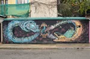 Umgebung machte und dabei einige hübsche Streetart Graffities entdeckte. Zum Abendessen waren wir in