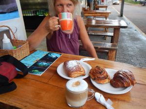 Die Nacht hatten wir gut überstanden, Amélie nahm nochmal Schmerzmittel. Zum Frühstücken gingen wir in ein Café an der Hauptstraße